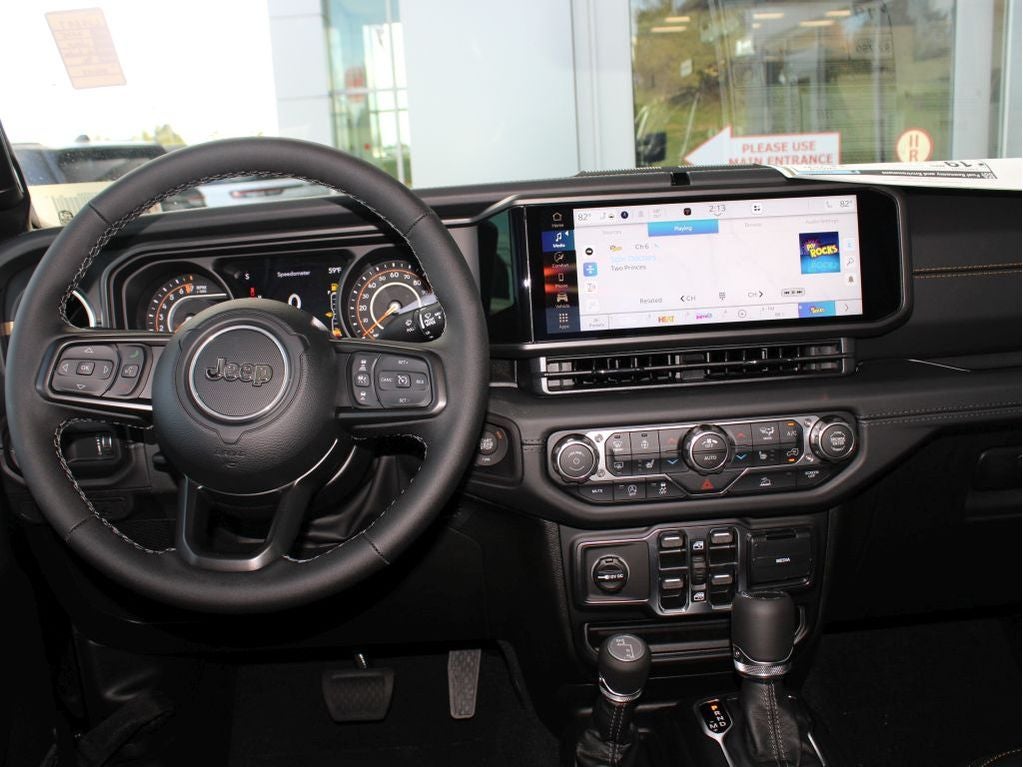 Convenience Group: Emergency/assistance Call; Front Door Locks 2-Door Passive Entry; 2-Piece Body Color Fender Flares; Remote Start System; Cluster 7.0" TFT Color Display; Universal Garage Door Opener; Daytime Running Lamp System; Heated Front Seats; Air Conditioning with Auto Temp Control; Heated Steering Wheel; Corning Gorilla Glass. Quick Order Package 24Q High Tide: Leather Wrapped Shift Knob; Premium Door Trim Panel; Power 4-Way Passenger Lumbar Adjust; Power 4-Way Driver Lumbar Adjust; 2-Piece Body Color Fender Flares; High Tide Tailgate and Hood Decals; Power Adjust 8-Way Front Passenger Seat; Integrated Radar Camera Module (IRCM); Security Alarm; Rear Armrest with Cupholder Seat; Hard Seat Back; Advanced Brake Assist; Willys Suspension; Body Color 3-Piece Hard Top; Automatic Headlamps; Deep Tint Sunscreen Windows; 17" X 7.5" Painted Black Wheels; Premium McKinley Trimmed Seats; Full Speed Forward Collision Warning Plus; 97 MPH Vehicle Max Speed Calibration; Power Heated Mirrors; Daytime Running Lamp System; High Tide; Power Adjust 8-Way Driver Seat; Full Length Floor Console Premium Armrest; Premium Wrapped Steering Wheel; Leather Wrapped Park Brake Handle; Sun Visors with Illuminated Vanity Mirrors. Black Clearcoat. **Equipment listed is based on original vehicle build and subject to change. Please confirm the accuracy of the included equipment by calling the dealer prior to purchase.**