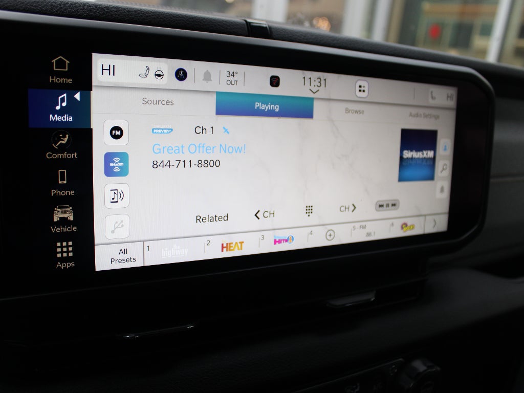 - Radio w/Seek-Scan, Clock, Speed Compensated Volume Control, Aux Audio Input Jack, Steering Wheel Controls, Voice Activation, Radio Data System and Uconnect External Memory Control
