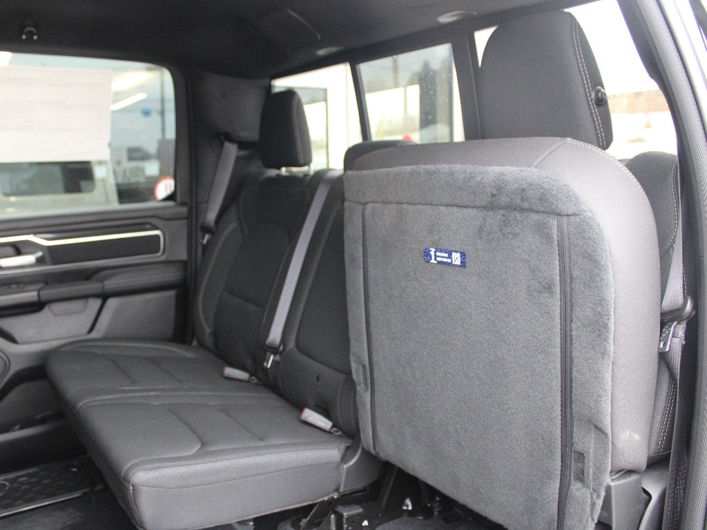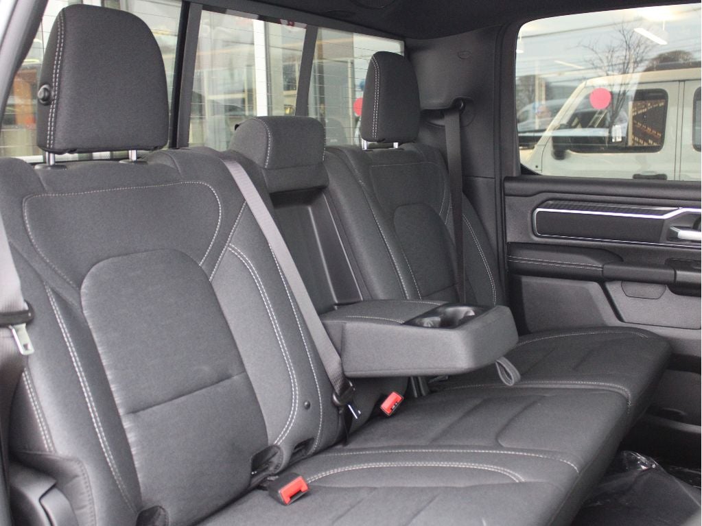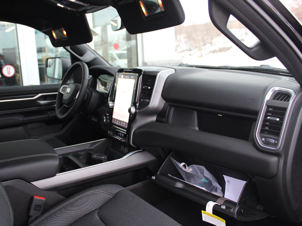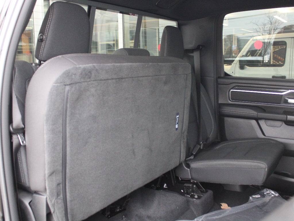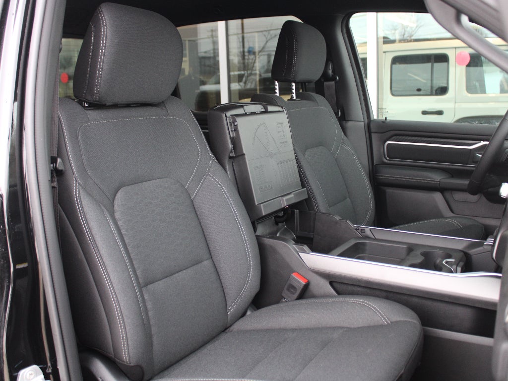 Quick Order Package 21Z Big Horn. Big Horn Level 2 Equipment Group: Google Android Auto; SiriusXM Radio Service; USB Host Flip; Power Adjustable Pedals; Leather Wrapped Steering Wheel; Integrated Voice Command with Bluetooth®; 12" Touchscreen Display; Glove Box Lamp; Auto Power-Folding Mirrors; 115V Auxiliary Rear Power Outlet; Media Hub with 2 Charge Only USBs; Heated Front Seats; Security Alarm; Black Premium Power Mirrors; Apple CarPlay; Premium Overhead Console; 9 Amplified Speakers with Subwoofer; Disassociated Touchscreen Display; Body Color Fender Flares; Remote Tailgate Release; 115V Auxiliary Power Outlet; LED Dome Lamp with On/off Switch; Universal Garage Door Opener; 2nd Row in Floor Storage Bins; Sun Visors with Illuminated Vanity Mirrors; LED Footwell Lighting; Rear Window Defroster; Integrated Center Stack Radio; Rear View Auto Dim Mirror; Rear Power Sliding Window; Connectivity - US/Canada; GPS Navigation; 4G LTE Wi-Fi Hot Spot; GPS Antenna Input; Overhead LED Lamps; Exterior Mirrors with Heating Element; Auto Dim Exterior Driver Mirror; SiriusXM with 360L; Global Telematics Box Module; Connected Travel and Traffic Services; Heated Steering Wheel; Configurable Drive Mode; 400W Inverter; HD Radio; Deluxe Cloth Bucket Seats; Uconnect 5 Navigation with 12.0" Display Radio; Exterior Mirrors with Supplemental Signals; Steering Wheel Mounted Audio Controls; Exterior Mirrors Courtesy Lamps; Air Conditioning ATC with Dual Zone Control; Cluster 7.0" TFT Color Display; Convex Wide-Angle Exterior Mirror Insert. Night Edition. Bed Utility Group: MOPAR Spray in Bedliner; MOPAR Deployable Bed Step; MOPAR 4 Adjustable Cargo Tie-Down Hooks; Pick-Up Box Lighting; Exterior 115V AC Outlet. Quick Order Package 23Z Big Horn. 9 Amplified Speakers with Subwoofer. MOPAR Black Tubular Side Steps. Anti-Spin Differential Rear Axle. Trailer Brake Control. Diamond Black Crystal PC. 3.92 Rear Axle Ratio. Rear Wheelhouse Liners. **Equipment listed is based on original vehicle build and subject to change. Please confirm the accuracy of the included equipment by calling the dealer prior to purchase.**