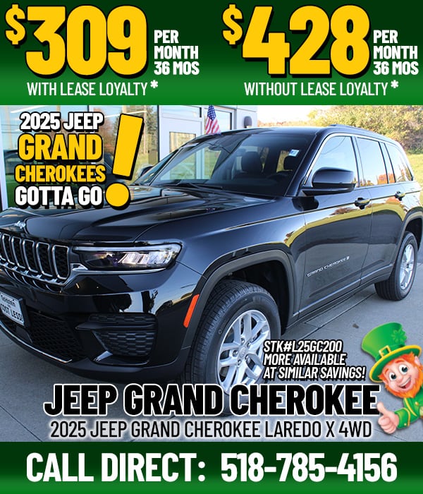 *Stk#L25GC200. MSRP: $44,170. LEASE: Selling price without Lease Loyalty: $40,942 ($3,000 Manufacturer Rebate; $228 Goldstein Discount; Lease only). Selling price with Lease Loyalty: $36,942 ($7,000 Manufacturer Rebates; $228 Goldstein Discount; Lease only). Residual value: $26,502. $3,999 cash down plus tax, first payment, acquisition fee and DMV/DOC fees due at signing. 36 month lease, 10,000 miles per year, 30¢/mile overage. Must lease through Stellantis Financial Services, must be approved Tier 1 credit to qualify. FICO Score of 720 to qualify. BUY: Selling price without Lease Loyalty: $39,692 ($4,250 Manufacturer Rebate; $228 Goldstein Discount; Retail Purchase only). Selling price with Lease Loyalty: $35,692 ($8,250 Manufacturer Rebates; $228 Goldstein Discount; Retail Purchase only). Plus taxes, DMV & document fees. TRADE ASSIST: Must have trade-in vehicle to qualify. Plus tax, title, & DMV/DOC fees. Valid towards 2025 Grand Cherokees Only. Must present coupon at time of purchase. no cash value, not redeemable for cash. ALL OFFERS: Valid on New In-Stock Vehicles only. Prior sales excluded. Subject to availability. Photo for illustration purposes only. Lease Loyalty Bonus Cash: You or an immediate family member in the same household must be a Current Lessee of a qualifying vehicle at least 30 days prior to the lease of a new vehicle through Stellantis Financial Services; Maximum of two offers per VIN per lifetime of vehicle; Same day purchase required through Stellantis Financial Services; See dealer for complete details. Expires 3/31/26.