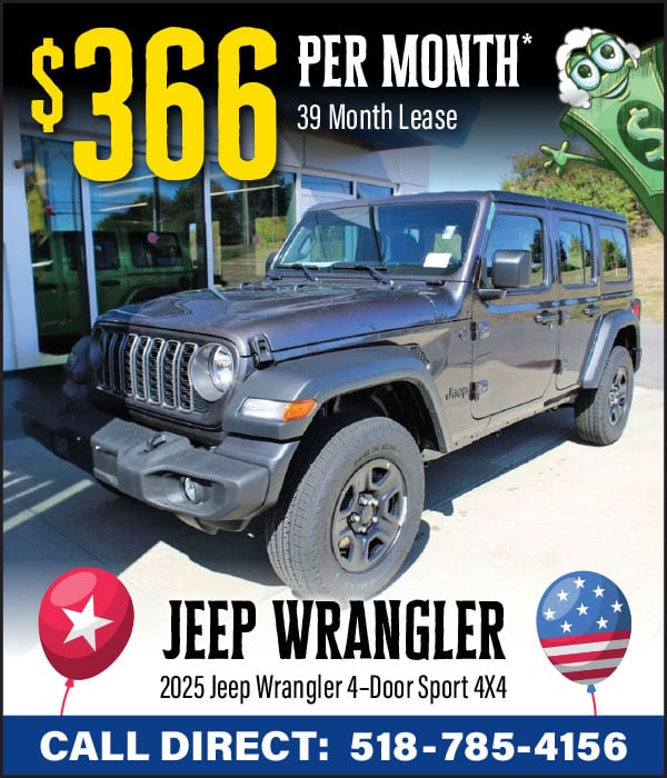 Only $366 Per Month to Lease a New 2025 Jeep Wrangler 4–Door Sport 4X4!*