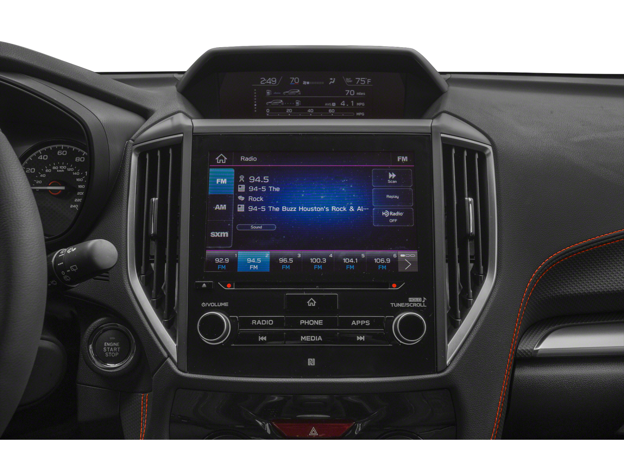 - Radio: Subaru Starlink 8.0" Multimedia Nav System -inc: AM/FM stereo HD Radio w/single-disc CD player w/MP3/WMA/CRR/RW file capability, multi-touch gesture high resolution display, 8.0" LCD screen, voice activated controls, voice activated navigation, Bluetooth audio streaming connectivity, hands-free phone connectivity and hands-free SMS text messaging connectivity, Near Field Communication (NFC), iPod control capability, rear-vision camera display, SiriusXM All Access radio, Traffic and Travel Link (subscription required), smartphone integration: AHA, Android Auto, CarPlay and Pandora, Starlink cloud applications: refer to subaru.com for app availability, USB input ports, 3.5mm auxiliary input jack and body color roof mounted antenna