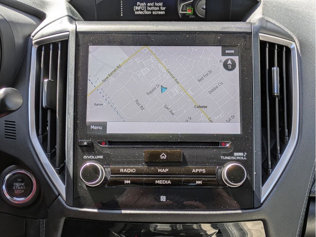 - Radio: Subaru Starlink 8.0" Multimedia Plus System -inc: AM/FM stereo HD Radio w/single-disc CD player w/MP3/WMA/CRR/RW file capability, multi-touch gesture high resolution display, voice activated controls, Bluetooth audio streaming connectivity and hands-free phone connectivity, Bluetooth hands-free SMS text messaging connectivity, Near Field Communication (NFC), iPod control capability, rear-vision camera display, SiriusXM All Access radio and Travel Link (4 months free trial/subscription required after), smartphone integration: AHA, Android Auto, CarPlay and Pandora, Starlink cloud applications: refer to subaru.com for app availability, steering wheel controls, 6 speakers, 3.5mm auxiliary input jack, dual USB input ports and body color roof mounted antenna