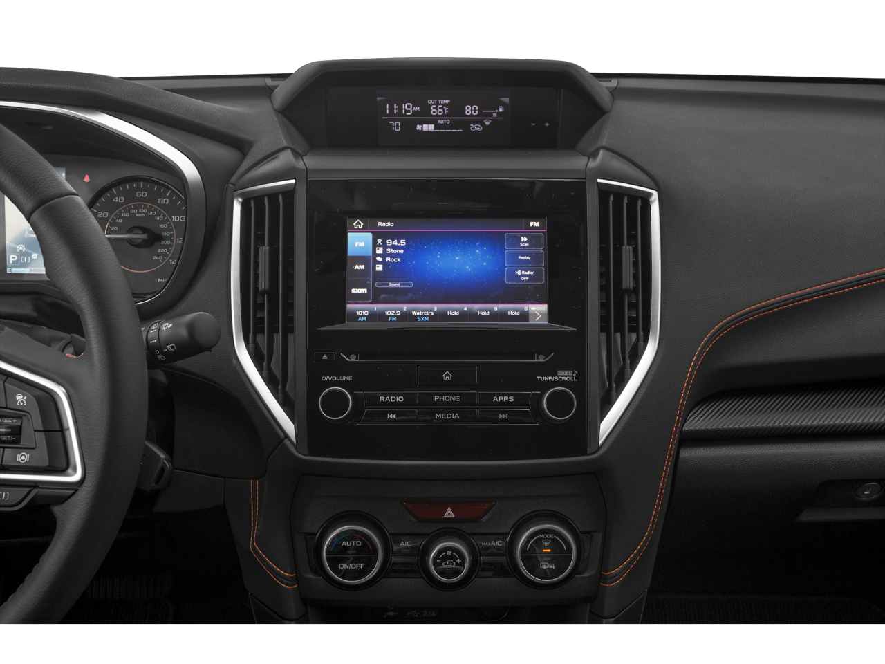 - Radio: Subaru STARLINK 6.5" Multimedia Plus System -inc: AM/FM stereo, HD Radio, single disc CD player w/MP3/WMA/CRR/RW file capability, multi-touch gesture high resolution display screen, voice activated controls, Bluetooth audio streaming and hands-free phone connectivity, Bluetooth hands-free SMS text messaging connectivity, iPod control capability, SiriusXM All Access Radio (4 months free trial/subscription required after), SiriusXM Travel Link (4 months free trial/subscription required after), smartphone integration: AHA, Android Auto, CarPlay, Pandora and STARLINK cloud applications, USB audio system update, steering wheel audio and Bluetooth control switches, 6 speakers (2 dash panel tweeter, 2 front door and 2 rear door), 3.5mm auxiliary input jack and front dual USB A input/charge ports