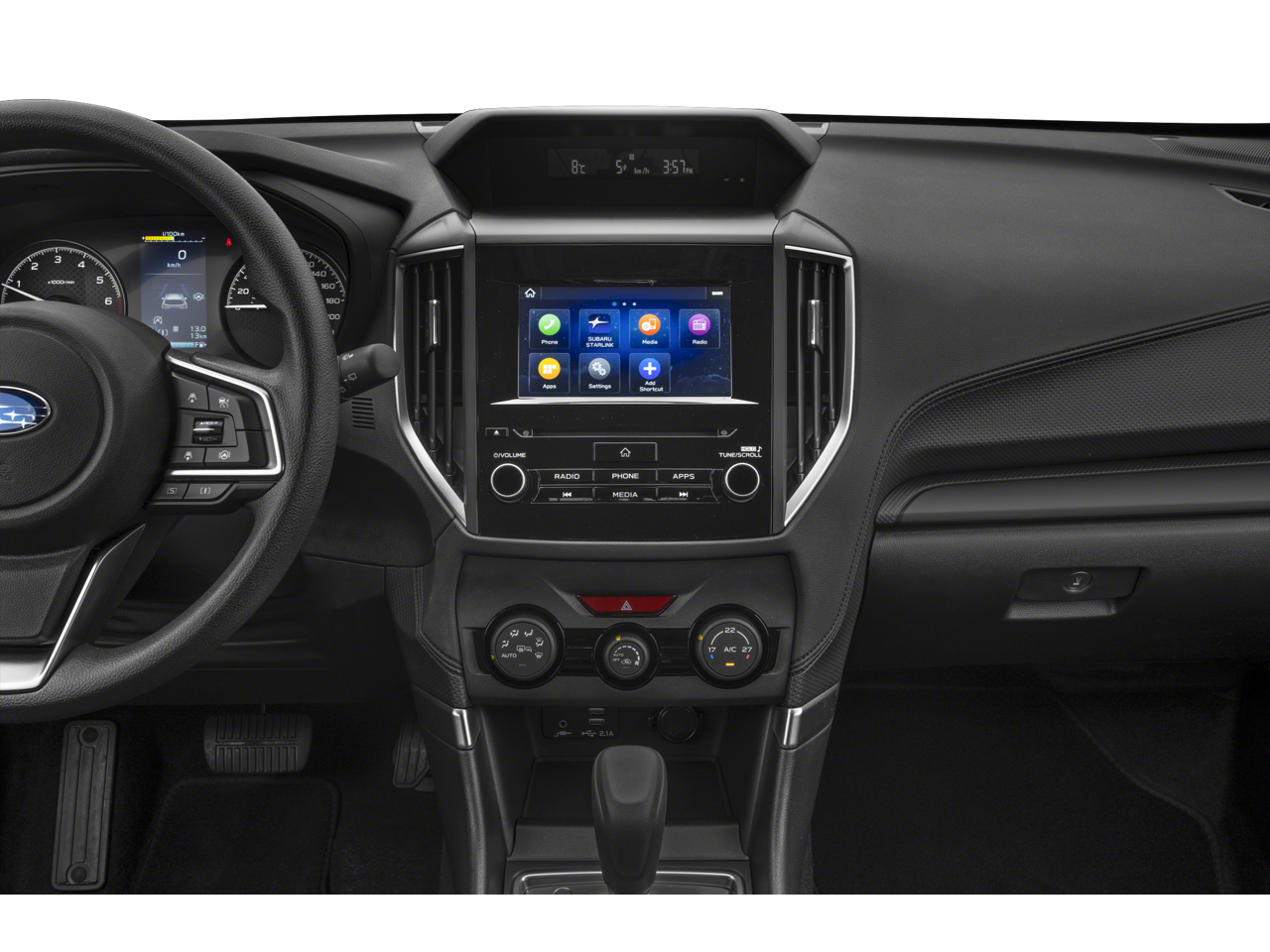 - Radio: Subaru Starlink 6.5" Multimedia Plus System -inc: AM/FM stereo, MP3/WMA/CRR/RW file capability, multi-touch gesture high resolution display screen, voice activated controls, Bluetooth audio streaming, hands-free phone connectivity and hands-free SMS text messaging connectivity (refer to subaru.com for cell phone compatibility), iPod control capability, SiriusXM All Access radio and Travel Link (4 months free trial/subscription required after), smartphone integration for AHA, Android Auto, Apple CarPlay, Pandora and Starlink cloud applications (refer to subaru.com for app availability), USB audio system update, steering wheel controls for audio and Bluetooth, 4 speakers, 3.5mm auxiliary input jack and USB A input/charge port