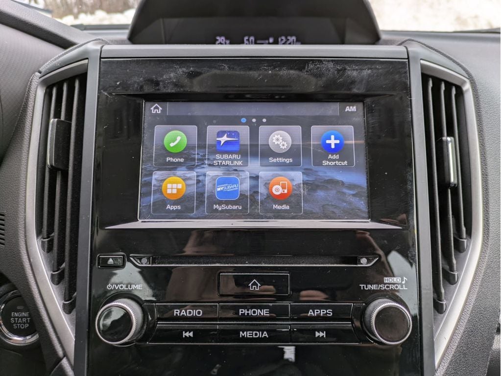 - Radio: Subaru Starlink 6.5" Multimedia Plus System -inc: AM/FM stereo HD Radio w/single-disc CD player, MP3/WMA/CRR/RW file capability, multi-touch gesture high resolution display screen, voice activated controls, Bluetooth audio streaming, hands-free phone connectivity and hands-free SMS text messaging connectivity (refer to subaru.com for cell phone compatibility), iPod control capability, SiriusXM All Access radio and Travel Link (4 months free trial/subscription required after), smartphone integration for AHA, Android Auto, Apple CarPlay, Pandora and Starlink cloud applications (refer to subaru.com for app availability), USB audio system update, steering wheel controls for audio and Bluetooth, 6 speakers, 3.5mm auxiliary input jack and dual USB A input/charge ports