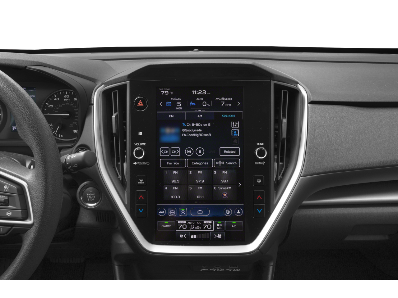 - Radio: Subaru STARLINK 11.6" Multimedia Plus Sys -inc: valet mode, AM/FM stereo, HD Radio, multi-touch gesture high resolution display screen, voice activated controls, Bluetooth audio streaming and hands-free phone connectivity, Bluetooth hands-free SMS text messaging connectivity, iPod control capability, rear-vision camera display, SiriusXM All Access radio (4 months free trial/subscription required after), SiriusXM Travel Link (4 months free trial/subscription required after), smartphone integration: Android Auto, Apple CarPlay, STARLINK cloud applications, 6 speakers, 3.5mm auxiliary input jack, illuminated/dual USB A and C input charge ports, roof mounted antenna and audio/satellite connected services